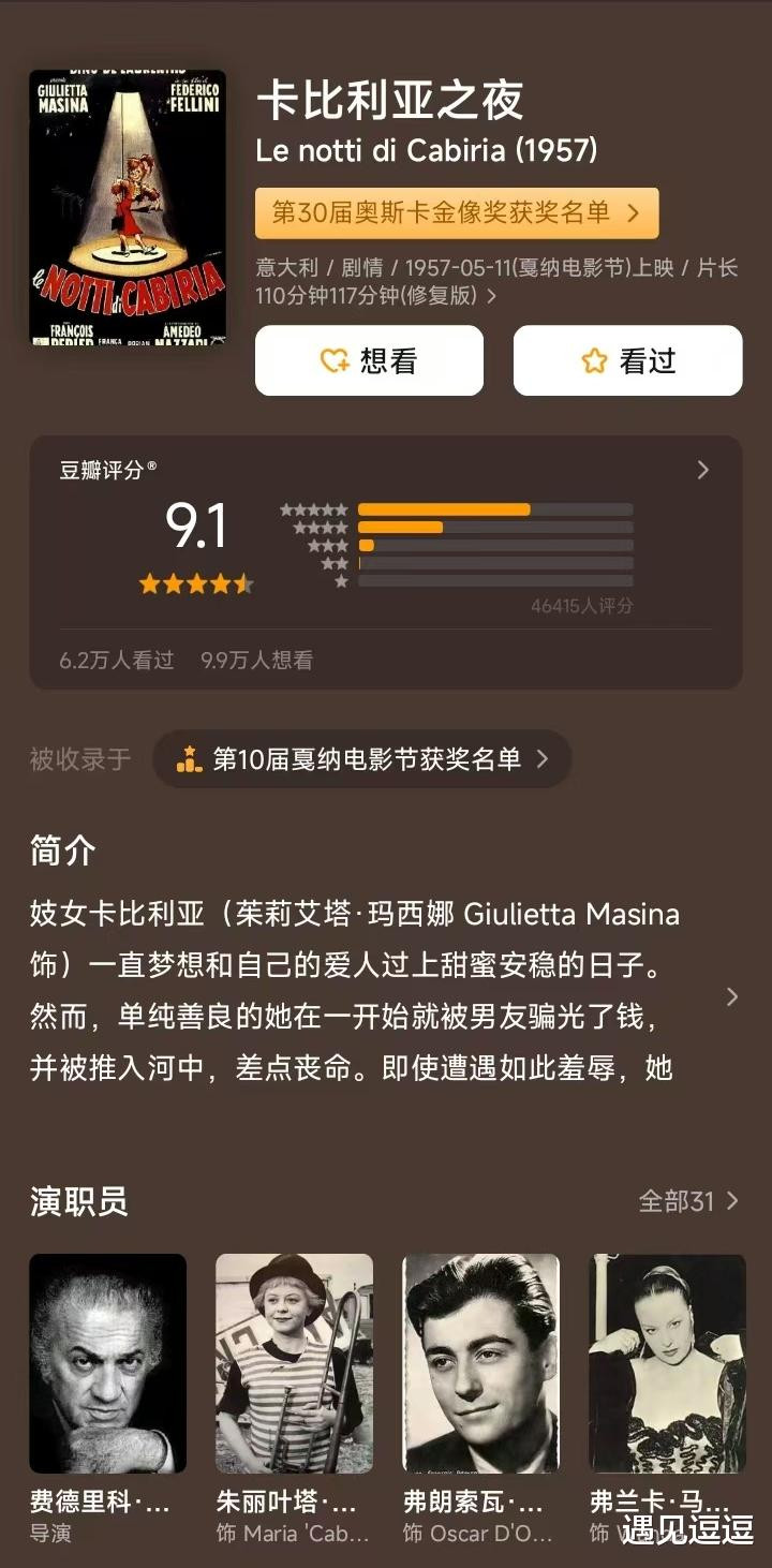 安利2025年的第一部好电影,片名叫《卡比利亚之夜》。