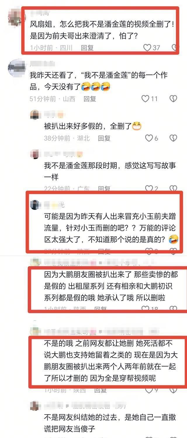 更令东谈主匪夷所念念的少量,跟着她以前发布的视频疑窦被揭穿后,她在整夜之间就删除了快要300条视频。 但凡相关她纪录和前夫哥的故事,以及和大鹏从意志到相爱的历程,完全没了,剩下的只须她和大鹏恋爱到娶妻的泛泛。