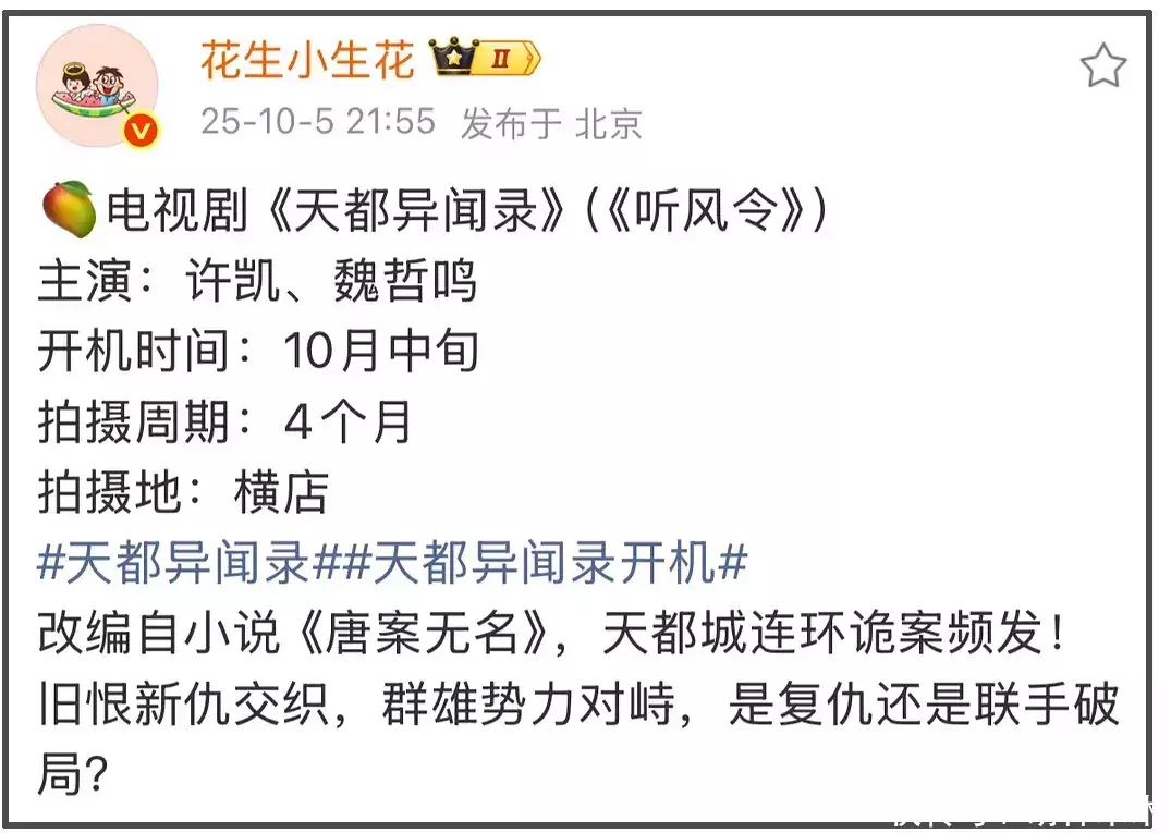 据悉,许凯进了《天齐异闻录》剧组,路透图是定妆上班照。该剧原名是《听风令》,属于芒果影视剧集,展望拍摄四个月。赌博风云刚出时,网传许凯被剧组开除了,如今成效进组评释之前的爆料十足是搅污水。