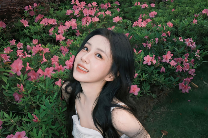 媚眼含羞合,丹唇逐笑开。风卷葡萄带,日照石榴裙