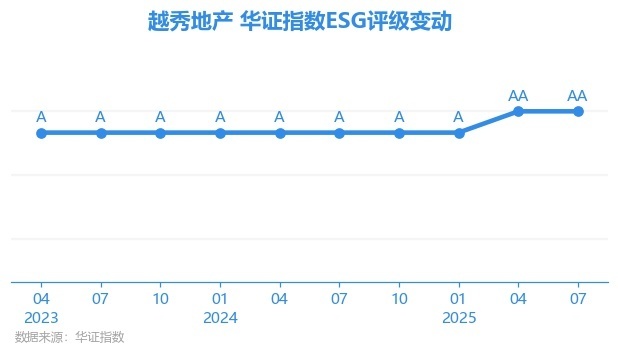 日前开yun体育网,华证指数公布了新一期(2025年7月31日)的ESG评级服从,越秀地产(00123.HK)获取AA评级(华证指数评级为C起至AAA九档,C为最低档,AAA为其最高一级评级/AA为其第二档),上一期(2025年4月30日)ESG评级为AA。本期ESG评级在91家房地产管制和拓荒行业港股上市公司中名次序2(上一期名次序4)。
