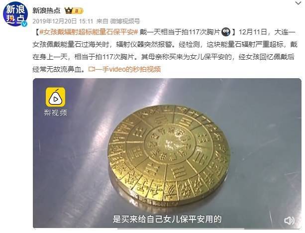 央视曾叙述过大连海关查获的一袋能量石被检出超标辐射量,唯一随身戴一天就十分于作念了117次胸片。