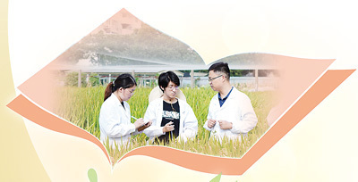 扬州大学“田管家”党员博硕士科技助农团成员检察水稻滋长情况。 扬州大学供图